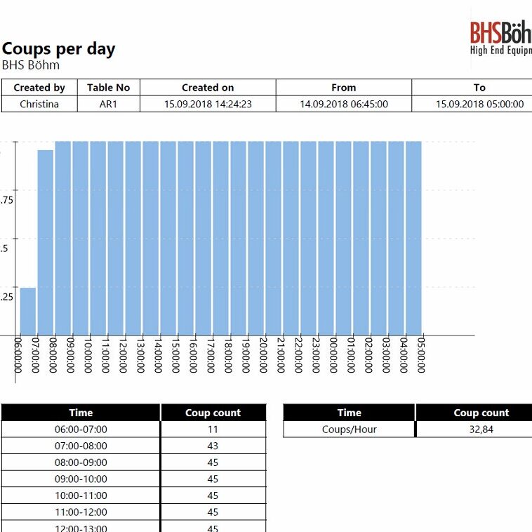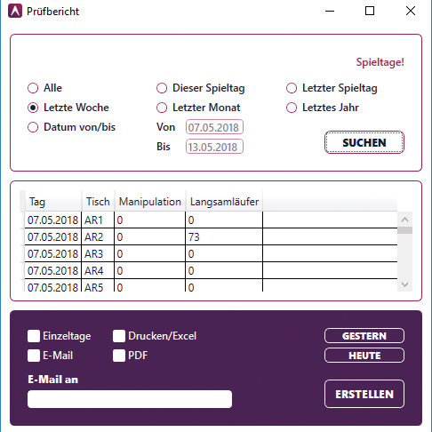 + Auswertung von Rotordrehzahlen, Tischlaufzeiten, Coups pro Stunde, Personaleinsatz