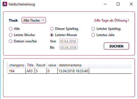 Sie können feststellen, wie viel Geld direkt an einem Tisch gewechselt wurde und zu welchem Zeitpunkt die Cashbox entnommen oder eingesetzt wurde