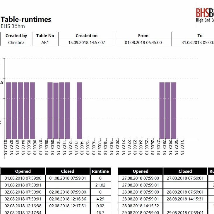 Die Lagenzählung mittels RFID-Technik kann ebenfalls mit einem Bericht dokumentiert werden.