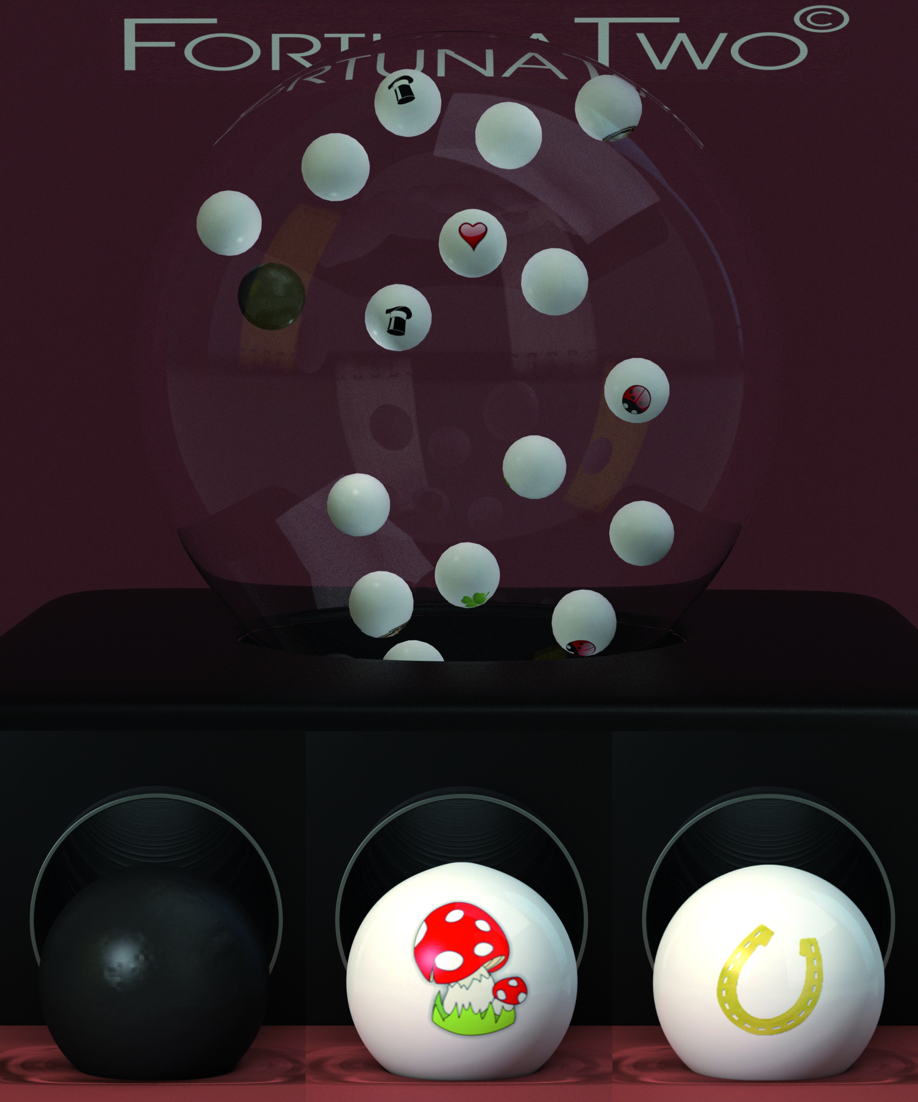 Der Bankvorteil wird durch ein achtes Symbol, das ebenfalls mit dem Zufallsgenerator gezogenwird, gewährleistet. Dieseswird bei der 3D- Animation mittels einer schwarzen Kugel dargestellt.