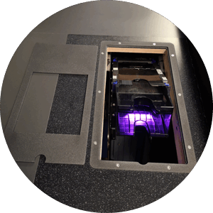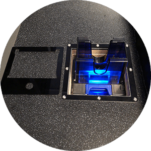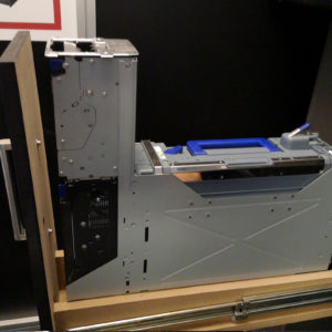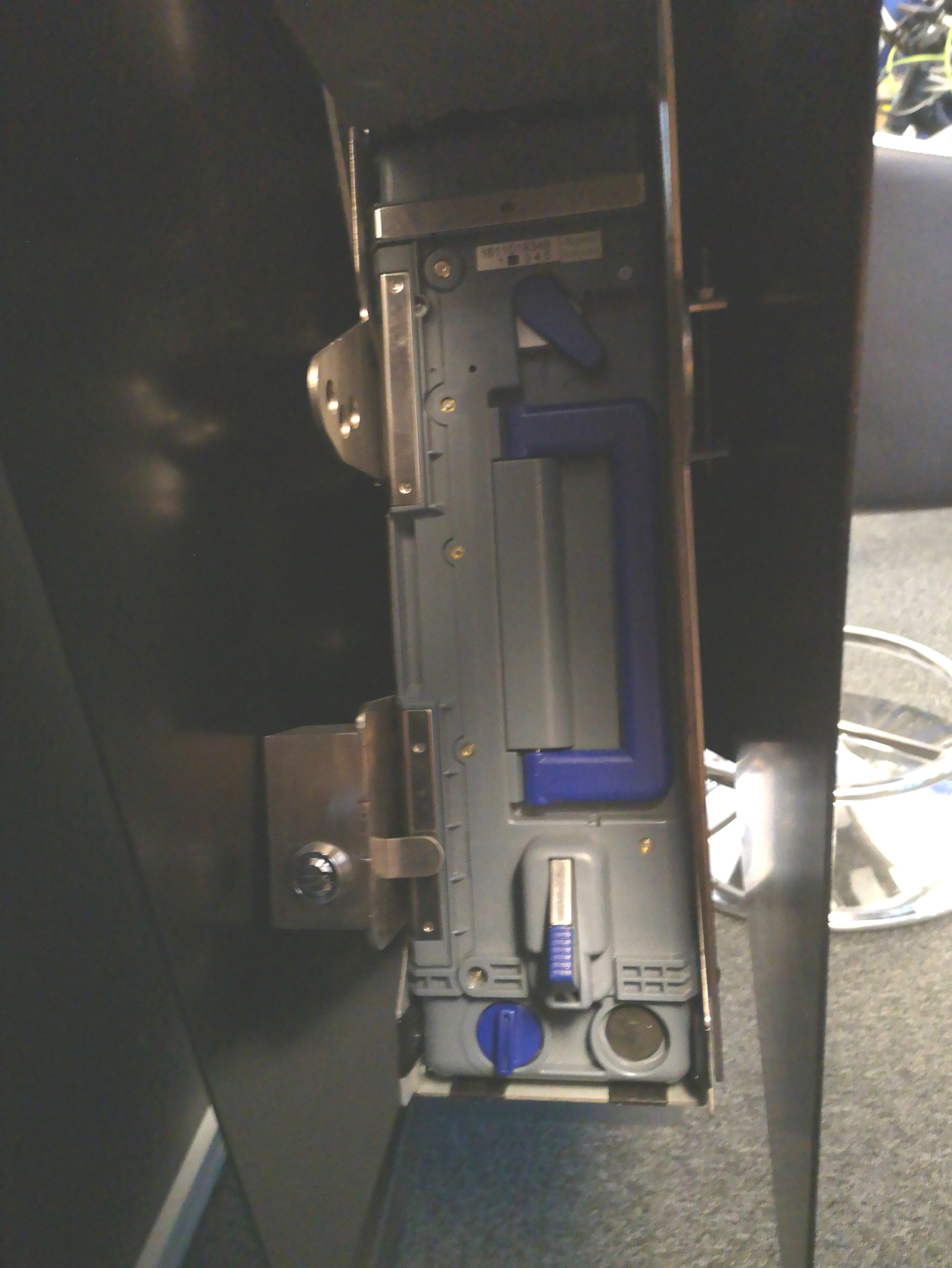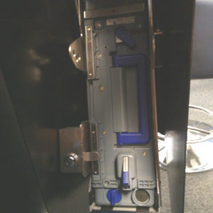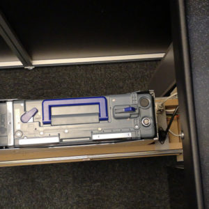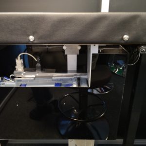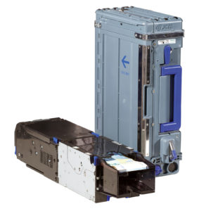 Die motorisch absenkbare Variante gestattet den senkrechten Einbau der Akzeptoreinheit. Im abgesenkten Zustand kann dann die Cashbox bequem entnommen werden.