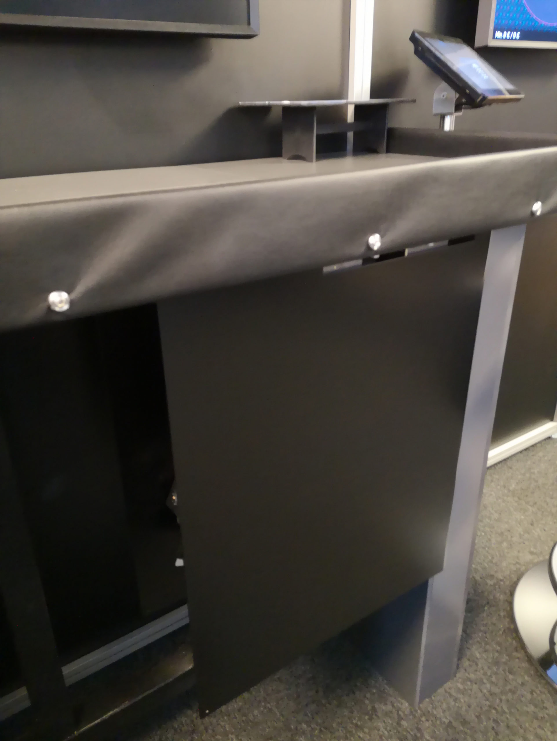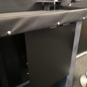 Bei dieser Variante wird der Akzeptor schräg in die Tischplatte eingebaut. Der Kopf des Akzeptors ist herausziehbar. Alle Service-Klappen sind ergonomisch optimal angeordnet und leicht zu bedienen. Die Geldkassette befindet sich unter der Tischplatte. Die Cashbox kann mit einem zusätzlichen Schloss gesichert werden.