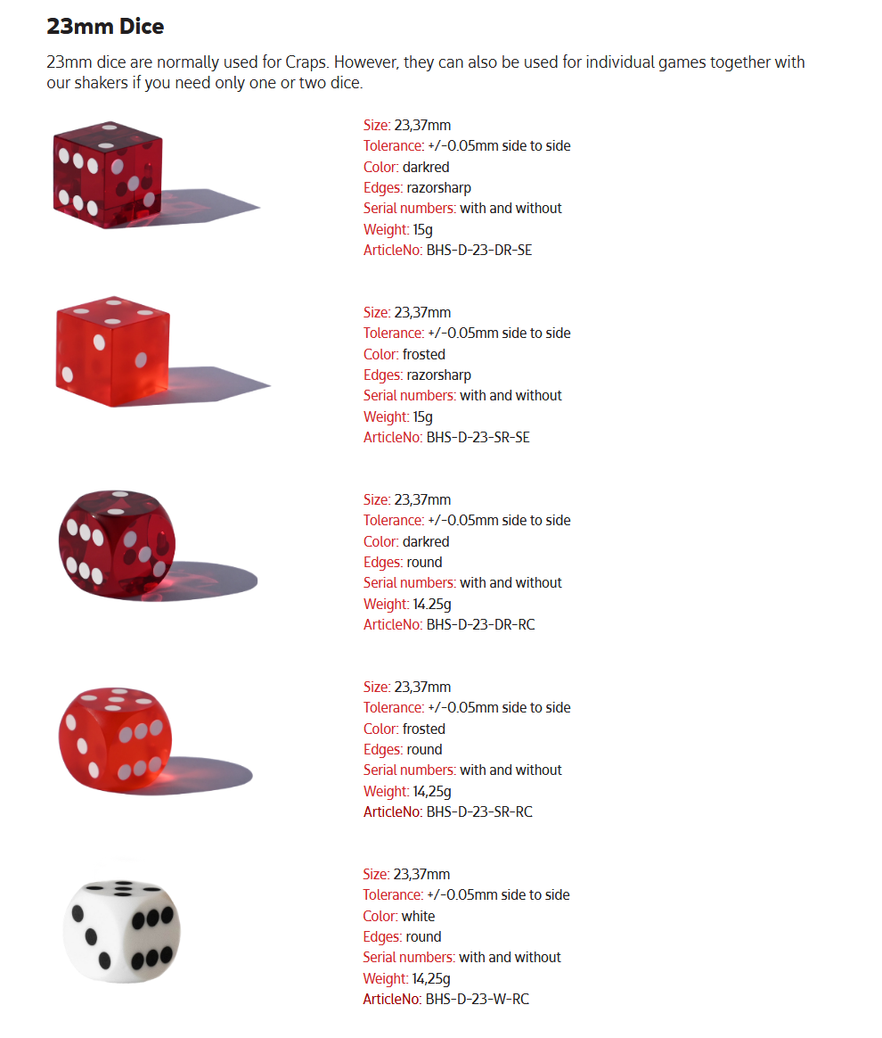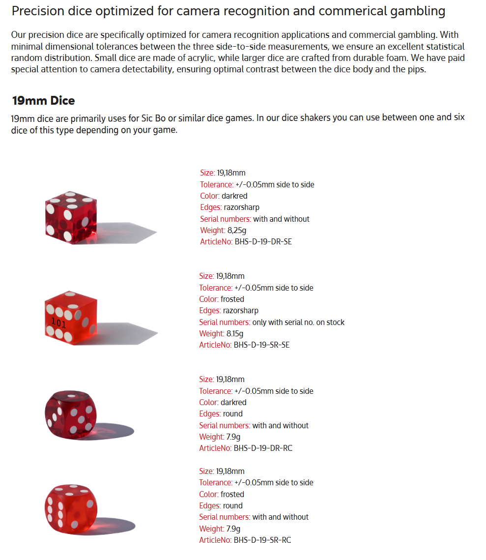 Präzisionswürfel, optimiert für die Kameraerkennung und kommerzielles Glücksspiel.